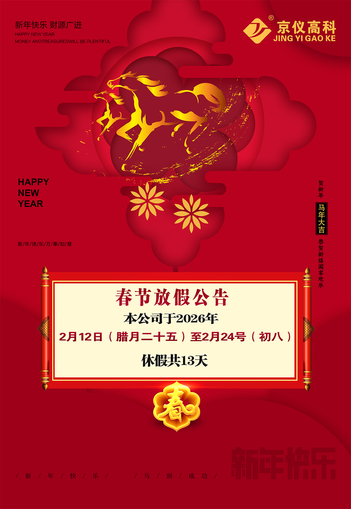Home > English > News information > Company news > 2026Chinese New year holiday notice.